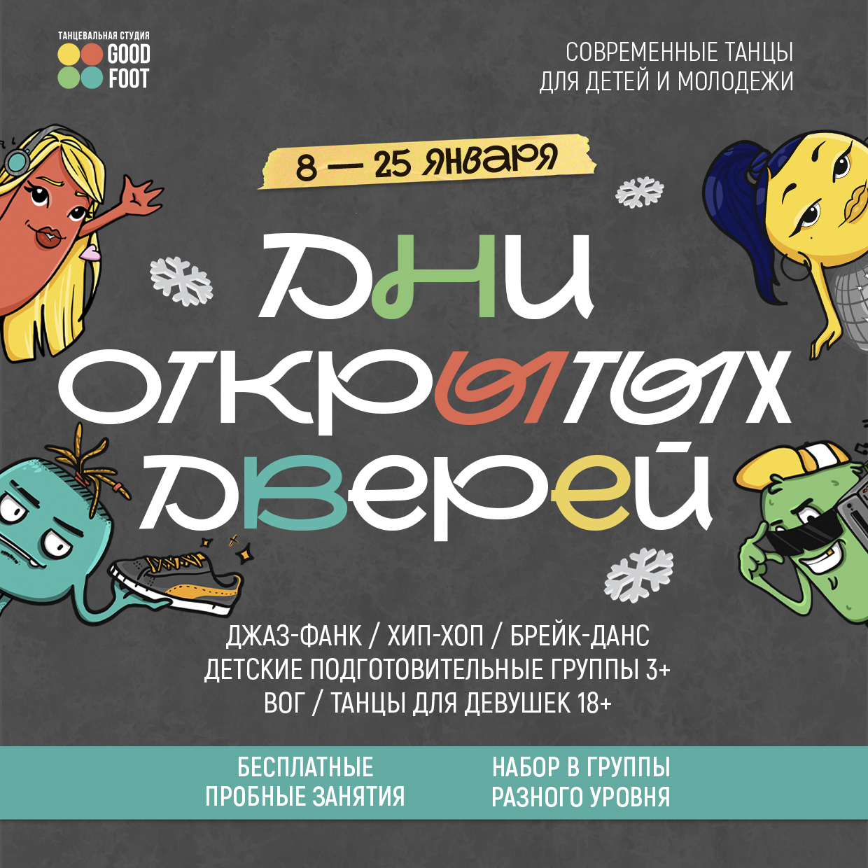 Танцевальная студия GOOD FOOT проводит тренировки по самым современным и модным танцевальным направлениям. Гуд Фут - одна из крупнейших танцевальных школ в Нижнем Новгороде.
