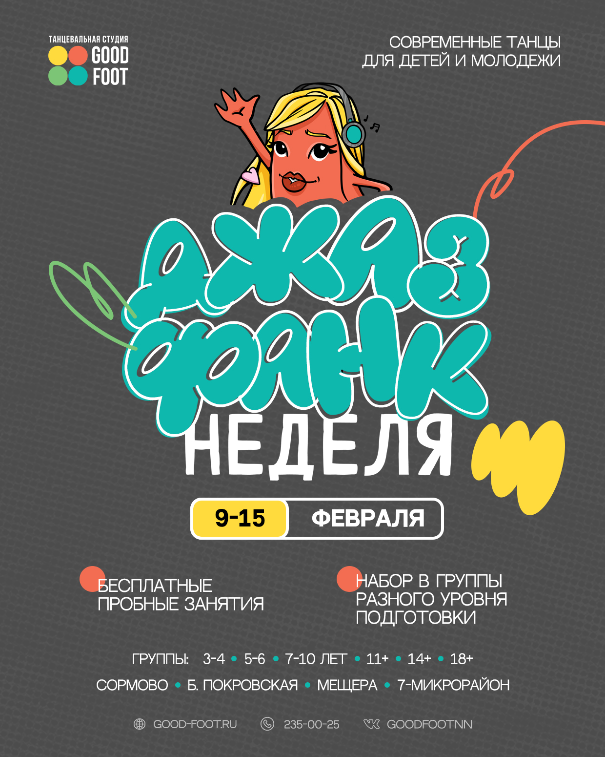 С 9 по 15 февраля объявляется ОТКРЫТАЯ НЕДЕЛЯ ДЖАЗ-ФАНКА!