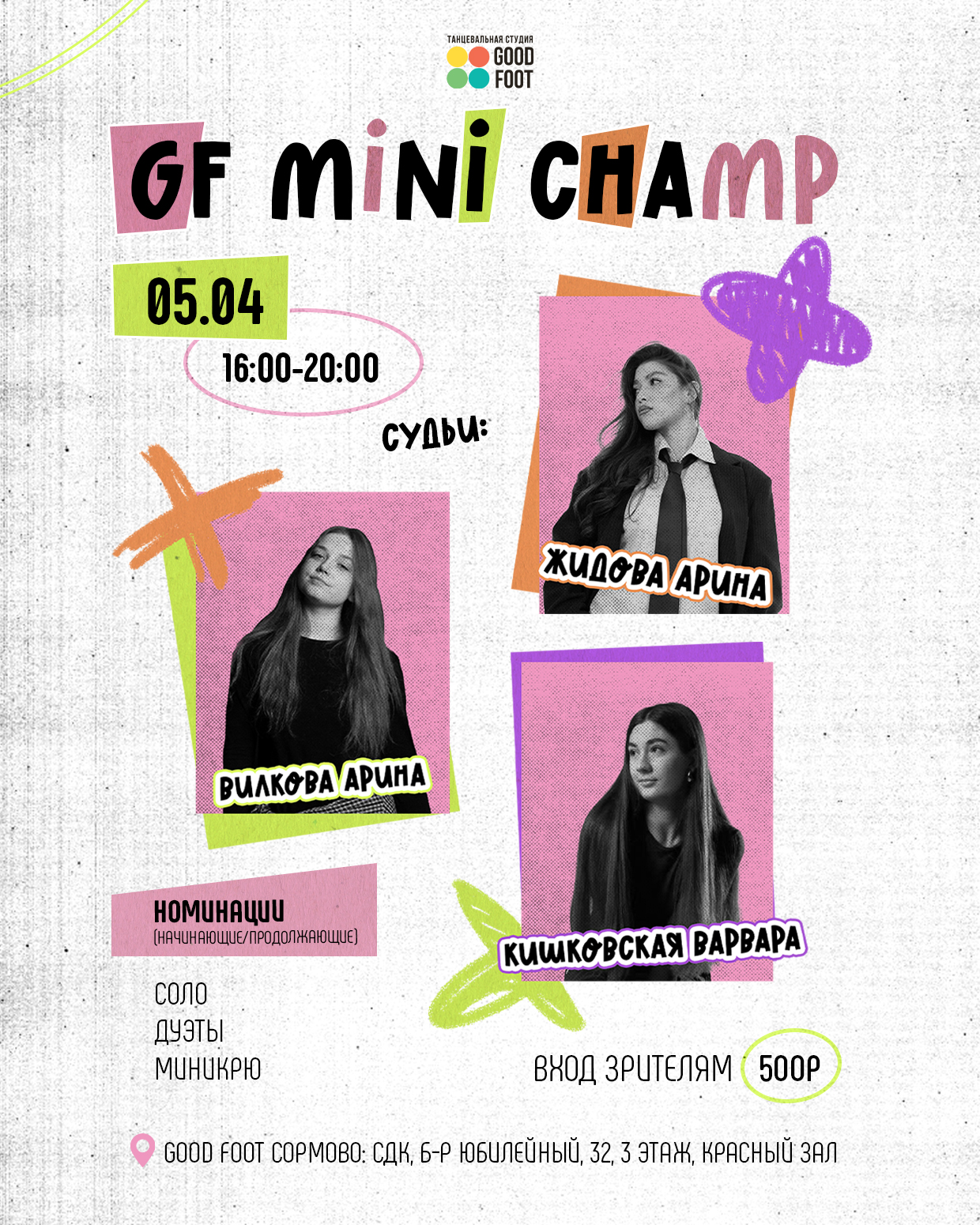 Мы услышали о твоих желаниях и решили создать эту уникальную возможность побыть хореографом и начать работать над своими скиллами в этой сфере перед тем как начать выступать на большой сцене. Все мы знаем, как это порой сложно выйти на общегородские мероприятия и осмелиться поставить что-то свое, под тот самый трек, который греет душу и уносит в мир танцевальной фантазии. Так вот, дорогой гудфутовец, уже 6 апреля тебя ждет это долгожданное мероприятие, где ты можешь заявить о себе, а помочь зажечь твою звезду хореографа помогут волшебные