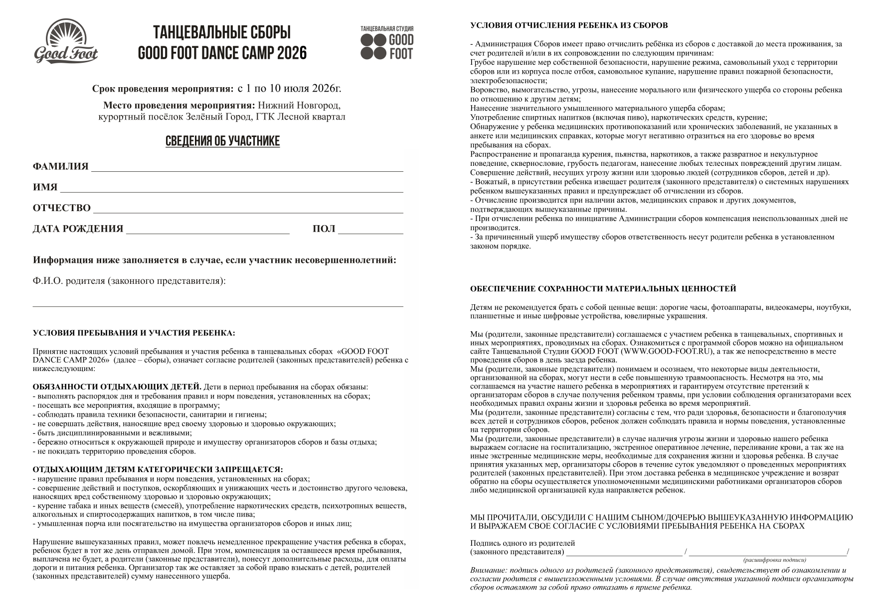 - 2000₽ – для тех, кто посещал танцевальные сборы Good Foot 2 раза подряд в 2024 и 2025